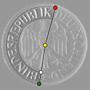 The local maxima are being searched for at pixel accuracy. Then an optional step can be applied, that generates sub-pixel accurate results by fitting a selectable model to the gray values within the specified Radius (see TSubPixelMode). The Radius is only used with SP_Parabolic_Accurate and SP_Gauss. For SP_Parabolic_Fast the Radius is always 1 (8-connected).
