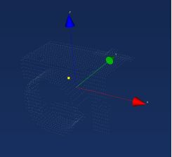 In the object frame orientation the point cloud has its origin in a predefined distance from the sensor, while the Z-axis points in the direction of the sensor. Accordingly, Z coordinates increase with decreasing distance from the sensor. Again the X-axis points to right, thus resulting in reversed direction of Y.