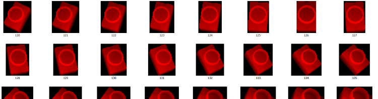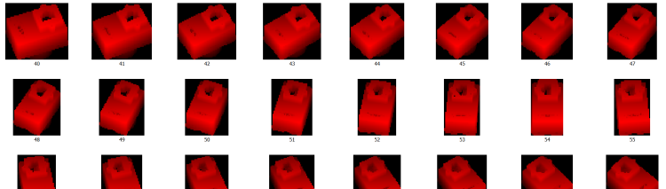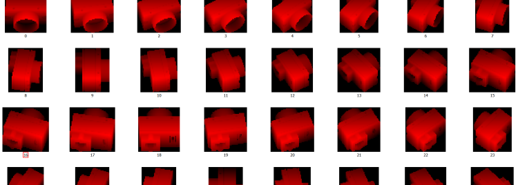 To generate appropriate templates for this scene, we simulate it accordingly. For the sensor's latitude we choose 35 degrees (0 degrees would generate a view from above, 90 degrees a view from the side) and let the object rotate around its own Z axis. In most cases, covering 360 degrees rotation in 10 degree increments is sufficient, resulting in 36 templates.