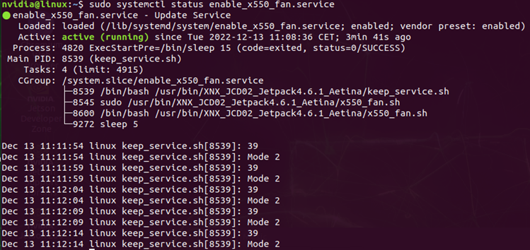 After booting your device you can verify functionality of the X550 fan service with the following command: