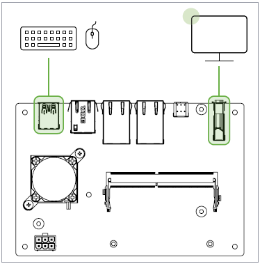 Connect the Display port of the Modular Embedded Board via a Display cable (HDMI) with your display.