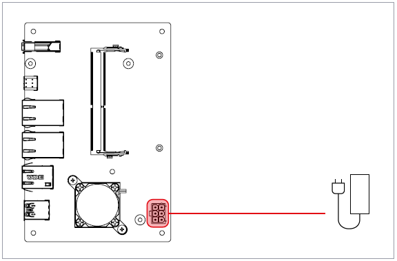 Link the power connector cable with the industrial power adapter and connect it to the DC-in port of the Modular Embedded Board.