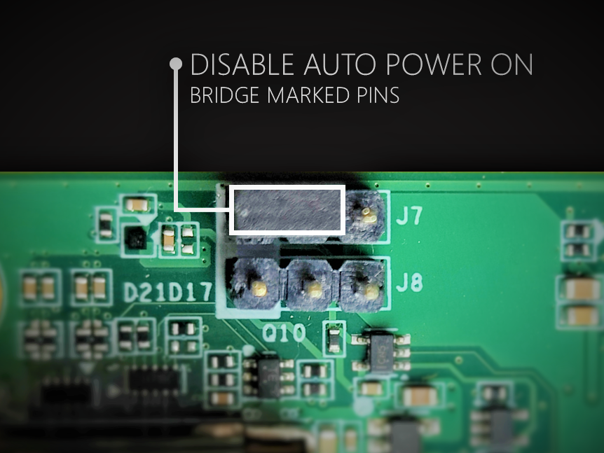 In order to disable that behavior, bridge the marked pins from connector J7: