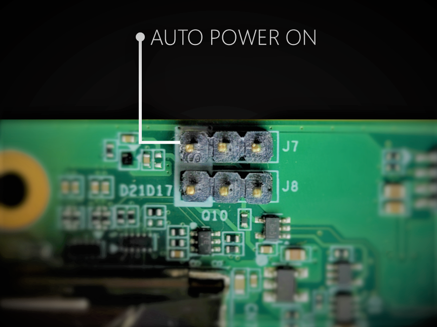 By default, without modifying the J7 connector pins, the board boots as soon as it is connected to a power supply.